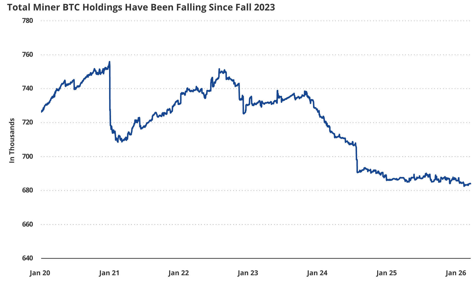 Объем биткоина на балансах майнеров снижается с осени 2023 года. Источник: VanEck.