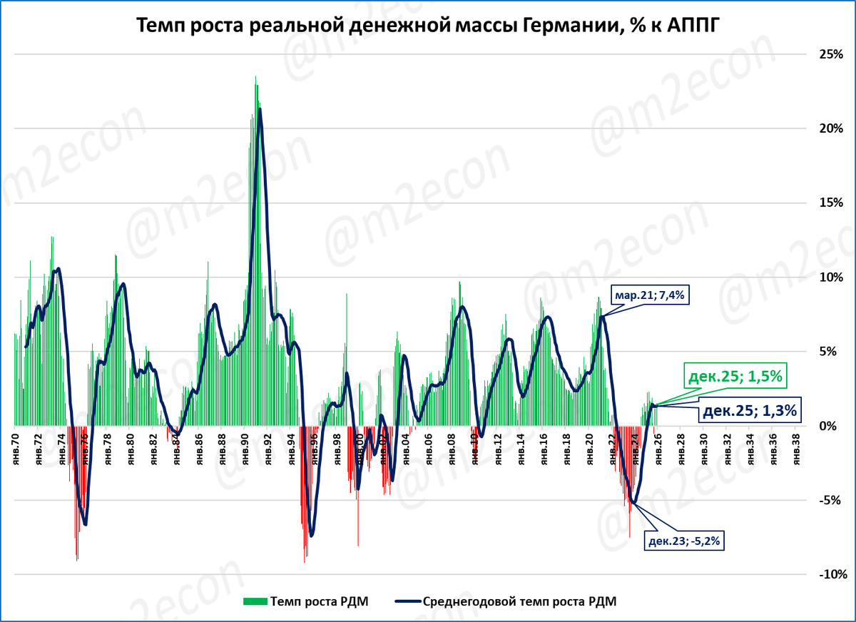В декабре рост денежной массы в Германии составил 3,3% годовых.