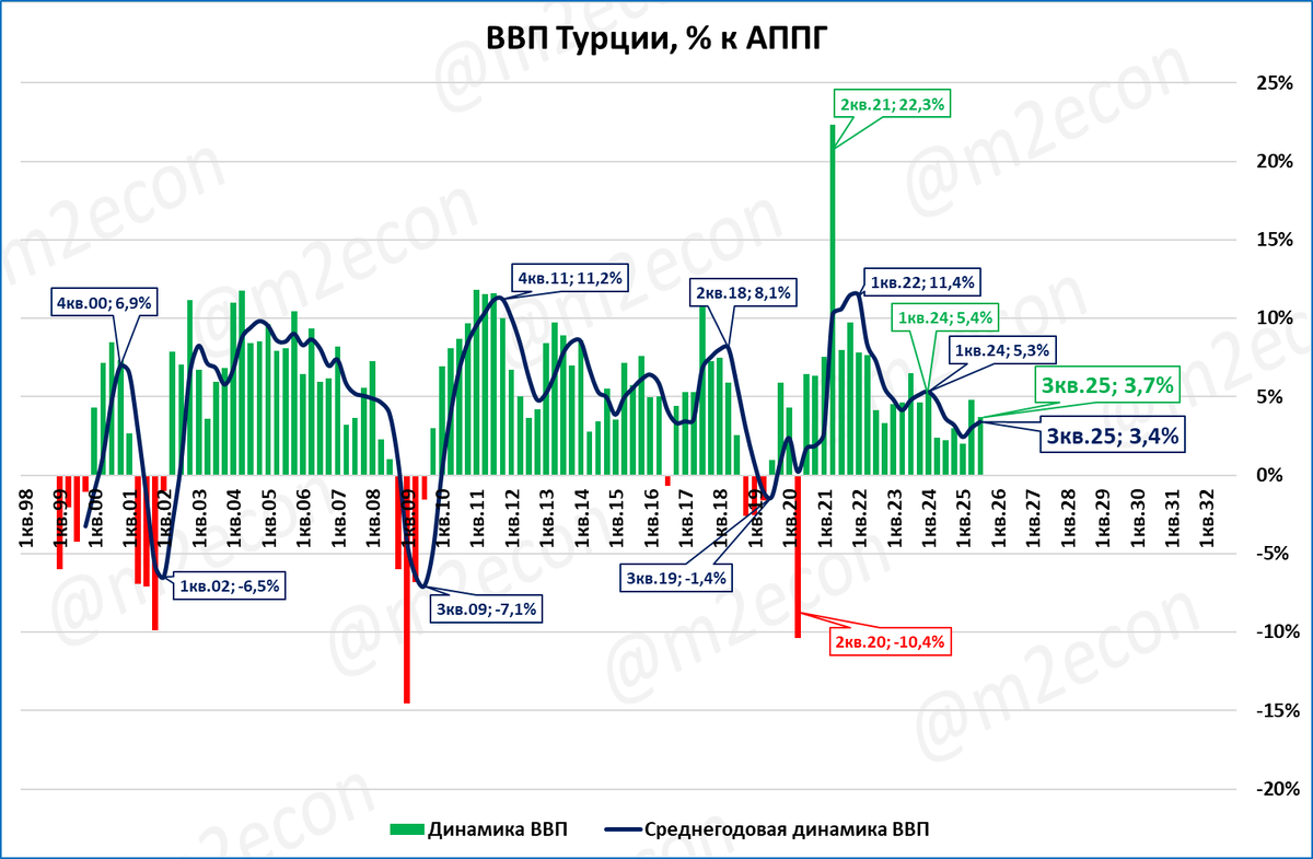 Напомним, что в 3 квартале рост ВВП Турции составил 3,7% к 3 кварталу 2024 года.