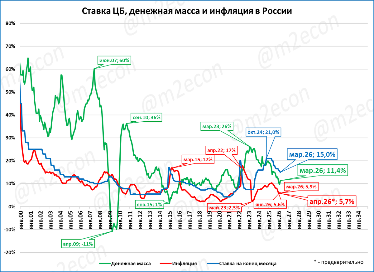 Отличие: В 2000-2002 годах денежная масса росла темпами 30-60% годовых. В 2025 году денежная масса росла темпами 10-19%, причём эти темпы непрерывно снижались.