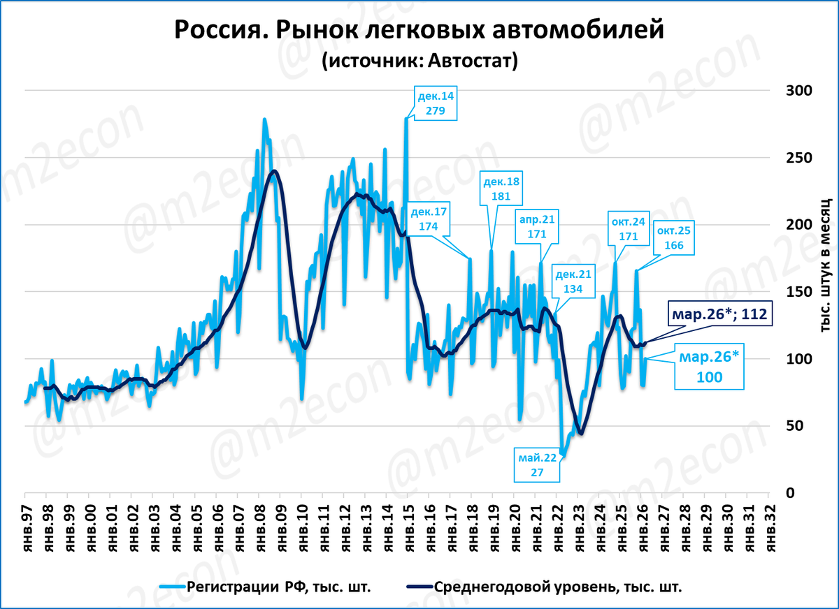 Судя по недельным данным и по нашим расчётам, регистрации в марте составят порядка 100 тыс. шт. (99 тыс. оценка недельной давности)