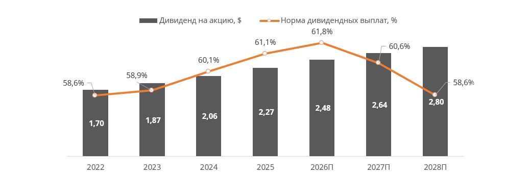 Менеджмент подтвердил среднесрочный прогноз: ожидается, что скорректированный EPS будет расти в среднем на 8% в год до 2032 г.