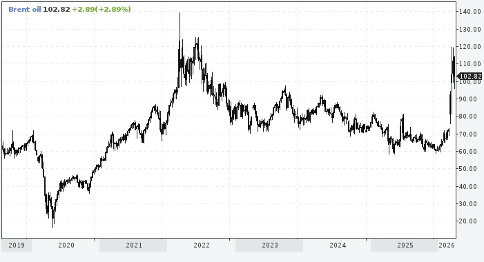 Во время шока 2022 года фьючерсы на нефть марки Brent подскочили до 14-летнего максимума в 139 долларов за баррель, а цена на газ по голландскому стандарту TTF позже взлетела до рекордного уровня, превысив 340 евро за мегаватт-час.