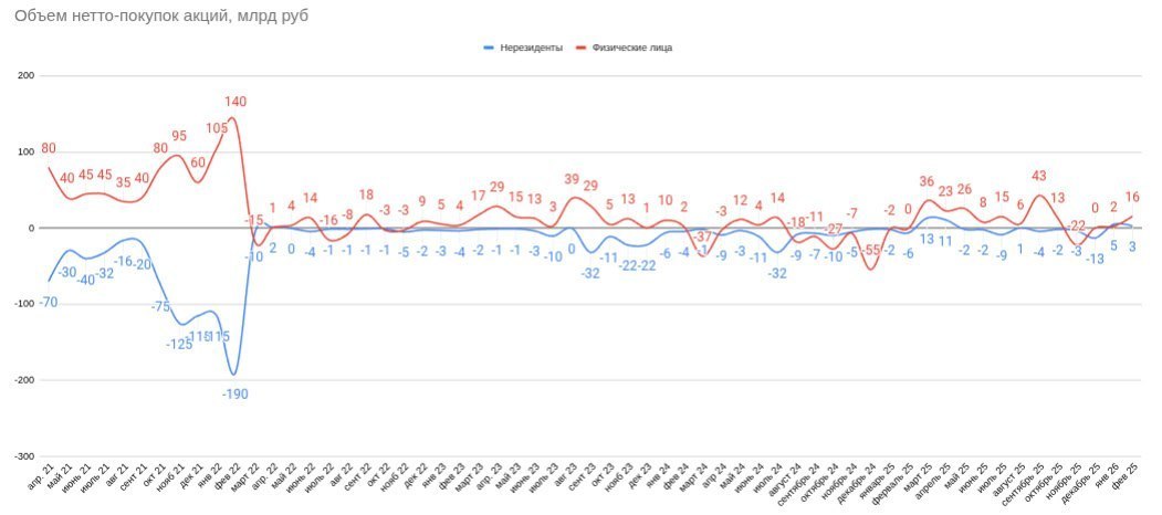 С начала 2023 года нерезиденты вывели с российского рынка 228 млрд, а физики за этот же период завели на рынок акций 203 млрд. Еще раз: физики, являющиеся главными покупателями на рынке, завели денег меньше, чем вывели нерезиденты. Это официальные данные от ЦБ.
