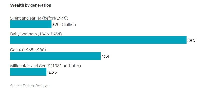 Бэби-бумеры обладают гораздо большим богатством, чем любое другое ныне живущее поколение. Во многом это объясняется тем, что они купили дома и акции десятилетия назад и извлекают выгоду из долгосрочного роста стоимости этих активов.