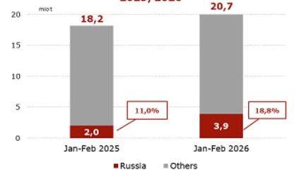 Из азиатского региона импорт угля нарастила Южная Корея, которая в январе-феврале увеличила поставки из РФ почти на 100% (до 3,9 млн. т.). Кроме этого, возвращаясь к Индии, появились цифры по импорту российского угля за первые три недели марта – в годовом выражении рост составил 50%. BigMint считает, что в 2026 г. (год с 01.04 по 31.03) рост закупок металлургического угля из РФ со стороны Индии вырастет на 8% г/г, составив 23,8 млн. т.