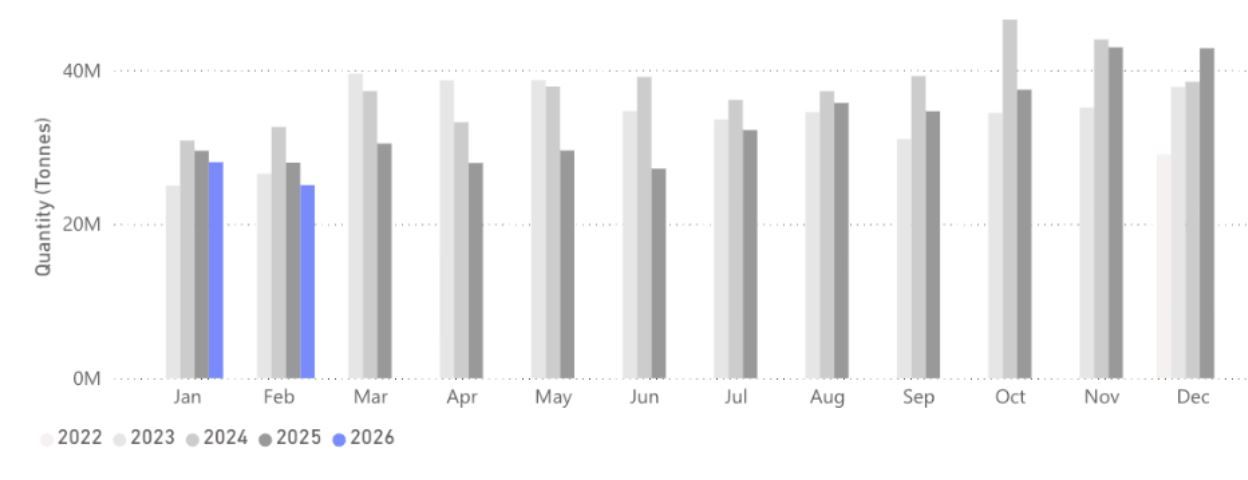 Одной из ключевых новостей марта стало заявление Индонезии о том, что страна может вновь пересмотреть свою политику в отношении добычи угля на текущий год и начать наращивать производство. Напомним, что ранее сообщалось о снижении квот на добычу угля в Индонезии до 600 млн. т. в 2026 г. vs. 790 млн. т. в 2025 г. Ситуация в стране осложнилась в т.ч. из-за трудностей природного характера (сильные дожди на Суматре) и нехватки нефти для горнодобывающих компаний.