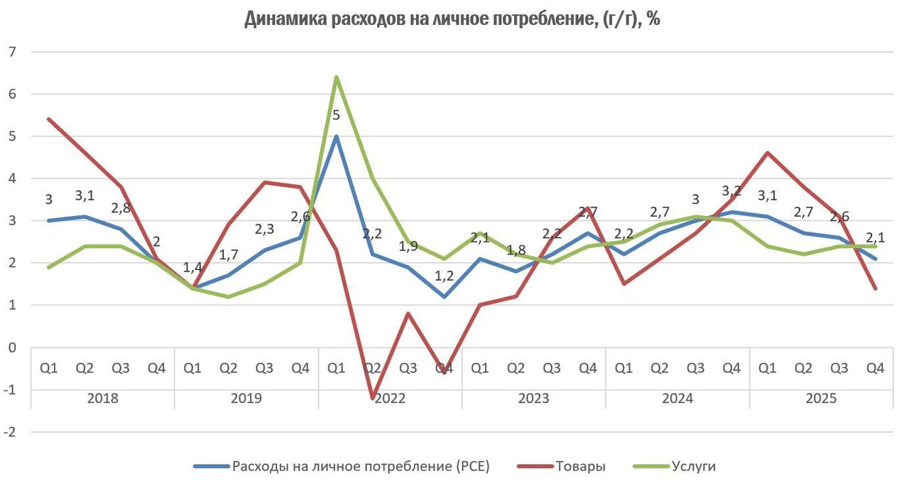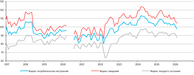 3. Потребительский сектор России в начале 2026 года демонстрирует замедление: после декабрьского скачка активности из-за налоговых реформ темпы роста расходов и розничных продаж вернулись к сдержанным значениям — усиливается ориентация на сбережения и базовые расходы, уровень доверия к долгосрочным покупкам остается низким.