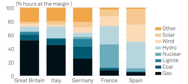 S&P Global Energy. Доли различных источников энергии в энергосистемах крупнейших европейских стран.