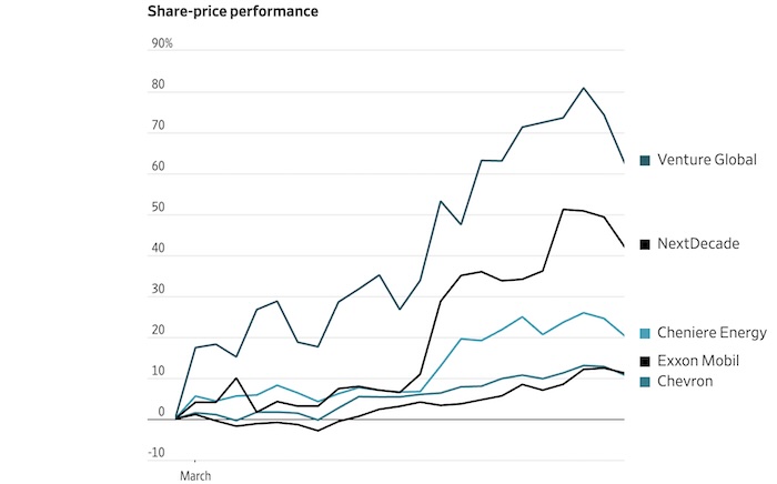 Это создает преимущества для поставщиков из других регионов, включая США, где экспорт продолжается без существенных перебоев. На этом фоне акции отдельных компаний показали заметный рост. Например, бумаги Venture Global, ориентированной на спотовый рынок, выросли с начала конфликта на 74%, а Cheniere Energy — на 25%.