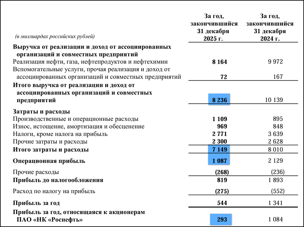 Роснефть опубликовала усеченные данные по МСФО за 2025 год: