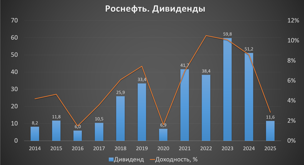 Роснефть стабильно платит дивиденды. Совокупная доходность за 2025 может быть на уровне 3%.