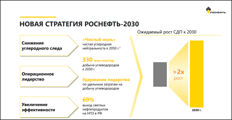 Также у компании есть стратегия до 2030 года, цель которой достичь добычи углеводородов 330 млн тонн в нефтяном эквиваленте. Т.е. рост более, чем на 30% к текущим показателям.