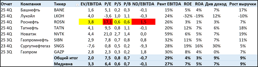 Рентаб. EBITDA = 26%; ROE = 3%; ROA = 1%.