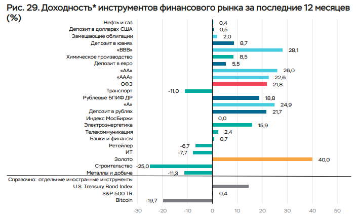 Активами с самой низкой рублевой доходностью в марте 2026 года в России стали: