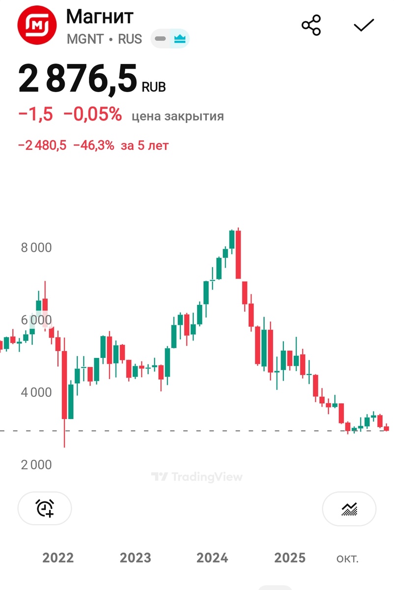 ➡️Магнит - эти акции очень сильно просели. И шортить их конечно очень опасно. Там легко могут вынести вверх на 10-20%. Но все же на небольшую часть можно пробовать. Эти акции - идеальный кандидат на шорт. Хотя соглашусь, что надо это было советовать намного раньше.