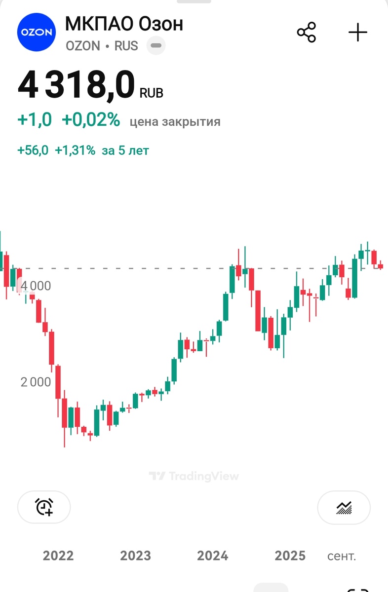 ➡️А вот Озон вполне возможно. Эти акции сильно выросли именно на ожиданиях роста бизнеса. Обычно такие акции растут авансом. Инвесторы рассчитывают на сильный рост бизнеса в будущем и поэтому покупают эти акции заранее, даже если нет прибыли. А там действительно компания долго работала в убыток. Впервые в своей истории Озон заработал для своих акционеров только во втором квартале 2025 года. Типичная акция роста с завышенным p/e.