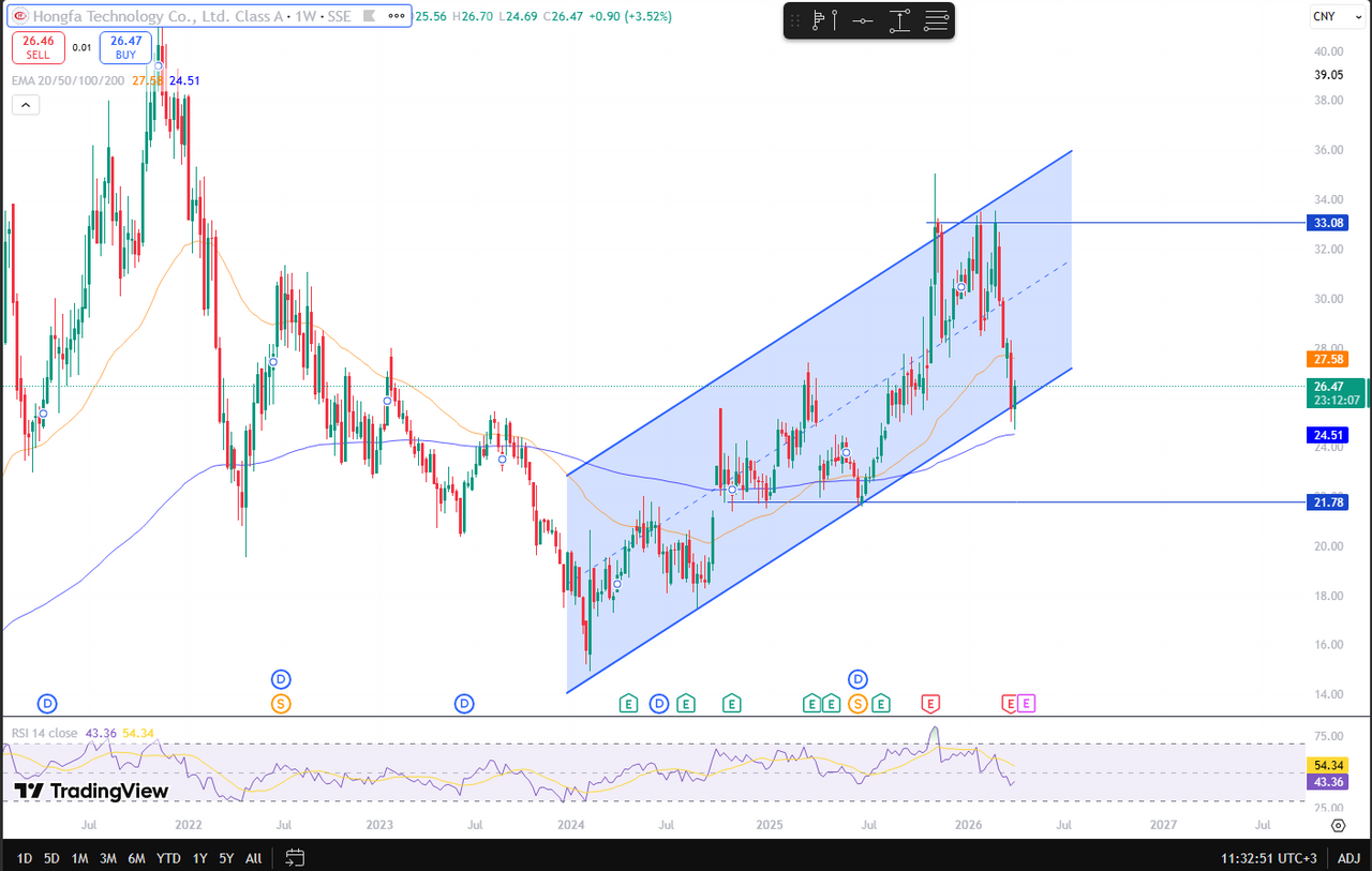 Hongfa Technology — ведущий китайский производитель электромеханических компонентов, один из крупнейших производителей реле в мире, поставляющий продукцию более чем в 120 стран. Компания остается финансово устойчивой, демонстрируя сильные показатели и стабильные темпы прироста выручки, выигрывая за счет расширения международного присутствия, развития сектора зеленой энергетики и тренда на электрификацию транспорта. При этом существуют сложности с ростом цен на сырье и риски рецессии на фоне военных конфликтов на Ближнем Востоке.