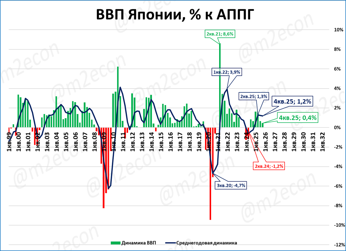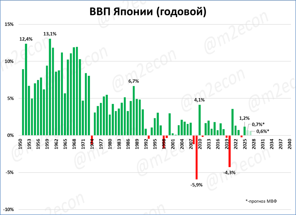 Это чуть выше январской оценки МВФ (1,1%). В 2026 году МВФ ожидает, что экономика Японии замедлит рост до 0,7%.