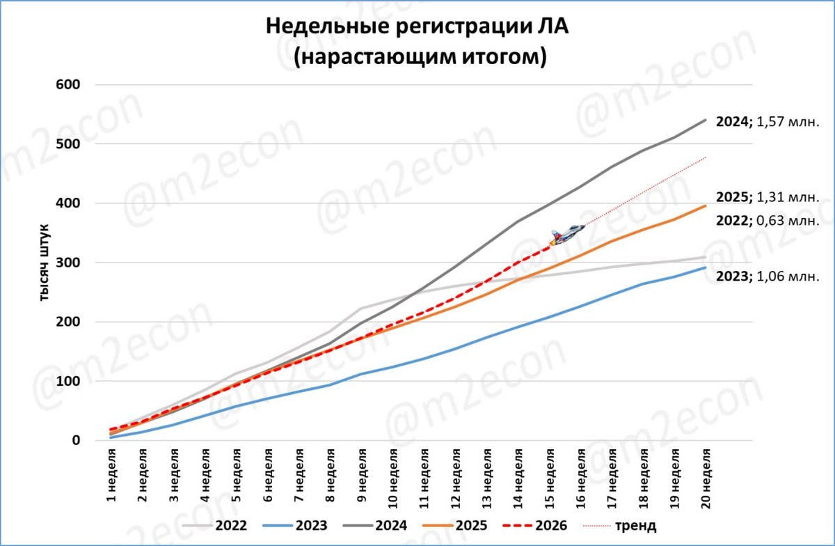 Это на 28% больше аналогичной недели 2025 года. Рост остаётся двузначным, неделя вошла в пятёрку лучших по динамике за последние почти полтора года