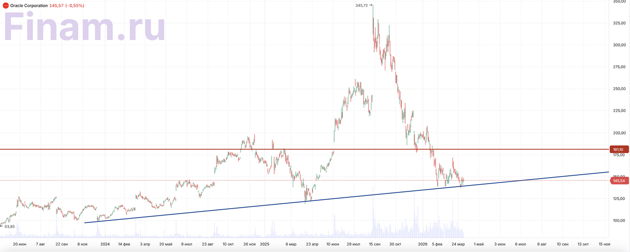 Oracle Corp (ORCL) — один из крупнейших поставщиков корпоративного программного обеспечения, баз данных и облачной инфраструктуры. Компания активно масштабирует Oracle Cloud Infrastructure и выигрывает от продолжающегося роста спроса на облачные мощности и ИИ-инфраструктуру.