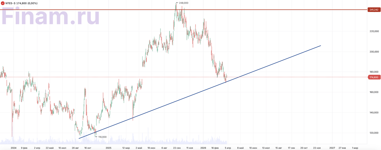 На Гонконгской бирже бумаги NetEase в последнее время заметно скорректировались. Динамика за последние периоды оставалась слабой: -2,8% за 1 месяц, -18,6% за 3 месяца и -18,6% с начала 2026 года. На наш взгляд, это краткосрочная коррекция, которая была на всем рынке и скоро кончится. Наш текущий рейтинг по акциям NetEase ― «Покупать» с целевой ценой 216,45 HKD, апсайд ― 23,8%.