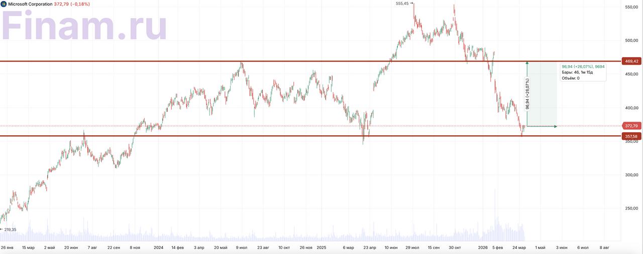 Ключевыми драйверами дальнейшего роста остаются расширение Azure, масштабирование M365 Copilot и GitHub Copilot, а также дальнейшее наращивание собственной ИИ-инфраструктуры. При этом акции Microsoft в последнее время заметно скорректировались. После публикации январской отчетности бумаги падали примерно на 10% за день, что стало крупнейшим однодневным снижением с марта 2020 года, а давление на котировки было связано прежде всего с опасениями рынка по поводу окупаемости ускорившихся ИИ-капвложений, тогда как фундаментально Microsoft остается одной из самых сильных глобальных историй в облаке и корпоративном ИИ. Наш текущий рейтинг по акциям Microsoft ― «Покупать» с целевой ценой $373,46, апсайд ― 34,3%.