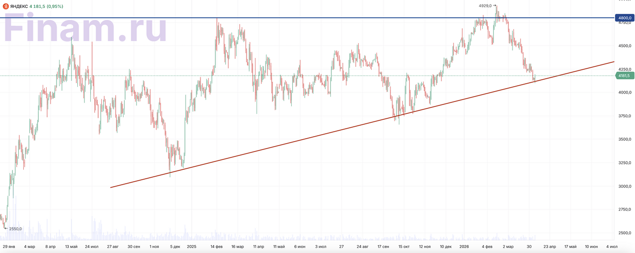 Компания начала активно формировать дивидендный кейс после завершения реструктуризации. Если в 2024 году «Яндекс» впервые выплатил дивиденды, то в 2025 году практика регулярных выплат получила продолжение. Мы ожидаем, что в 2026 году совокупные дивиденды по акциям компании составят 220 руб. на акцию с доходностью 5,4%, что усиливает инвестиционную привлекательность бумаги. Наш текущий рейтинг по акциям «Яндекса» ― «Покупать» с целевой ценой 5884 руб., апсайд ― 42,2%.