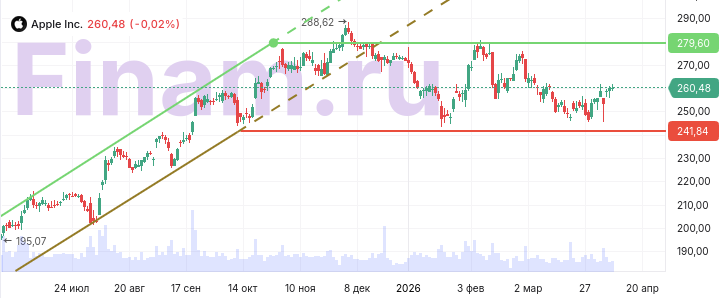 В то же время в данный момент акции Apple, на наш взгляд, выглядят несколько переоцененными, и мы нейтрально смотрим на них. Наша целевая цена для данных бумаг составляет $245, даунсайд составляет 6,0%, рейтинг ― «Держать».