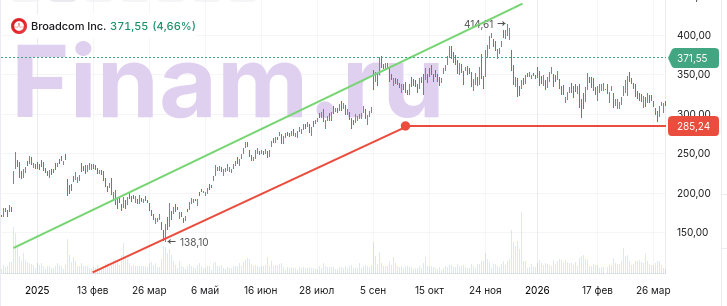 Broadcom (AVGO) является одним из ключевых бенефициаров продолжающегося бума инвестиций в ИИ-инфраструктуру и расширения мощностей дата-центров. Компания занимает сильные позиции в сегменте полупроводниковых решений для ИИ, включая специализированные ускорители, сетевые решения и компоненты для высокоскоростной оптической передачи данных.
