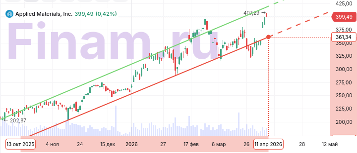 Applied Materials (AMAT) довольно неплохо смотреться в финансовом плане благодаря в целом неплохой конъюнктуре в глобальной полупроводниковой отрасли. Так, в I квартале 2026 фингода с окончанием в январе выручка компании уменьшилась на 2,1% (г/г) до $7 млрд, а скорректированная прибыль на акцию не изменилась, оставшись на уровне $2,38, однако оба показателя превзошли ожидания. При этом руководство дало сильный прогноз на текущий финквартал. По словам главы Applied Materials Гэри Дикерсона, «гонка по созданию ИИ-инфраструктуры ведет к беспрецедентным расходам на полупроводники, мощности по производству полупроводников, а также исследования и разработки в этой сфере». На таком фоне в компании рассчитывают нарастить свой бизнес по выпуску полупроводникового оборудования в 2026 календарном году на 20%. Причем значительное ускорение потока заказов ожидается со второй половины года.