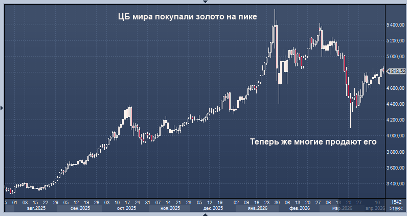 На рынке золота наблюдается необычное явление: центральные банки, которые годами накапливали драгоценный металл, теперь его продают. Это происходит из-за давления, вызванного конфликтом с Ираном, и необходимости получения наличных средств. В настоящее время спотовая цена на золото составляет около 4838 долларов за унцию, что на 10% ниже пика, достигнутого в конце января. Геополитическая напряженность усилилась, но цена на золото все равно снизилась, несмотря на эти риски.