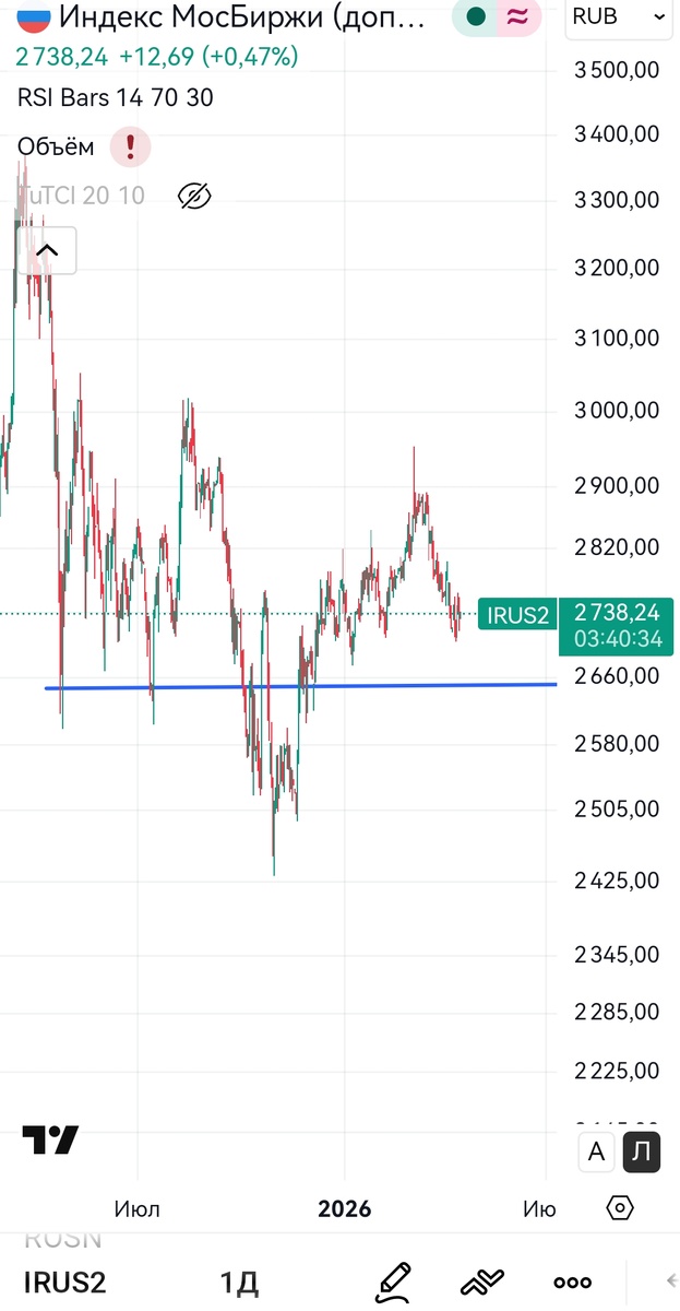 При этом глобально мы находимся в боковой консолидации с нижней границей около 2650. Преодоление этой поддержки пока ждать не стоит. Это может произойти ближе к концу весны.