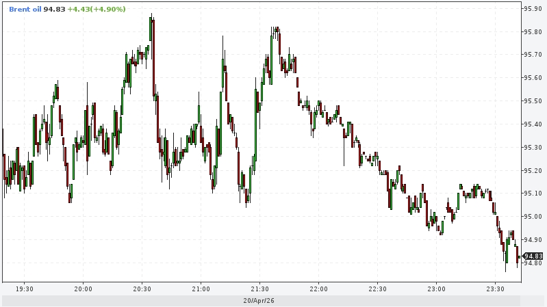 Цены на нефть выросли на 5% и в понедельник в Нью-Йорке превысили 95 долларов за баррель после заявления президента США. Дональд Трамп сказал, что «крайне маловероятно», что он продлит перемирие, и что пролив останется заблокированным до тех пор, пока не будет достигнуто соглашение. Продолжающийся энергетический кризис вызвал беспрецедентный шок предложения, усилив инфляционное давление и негативно повлияв на мировой экономический рост.