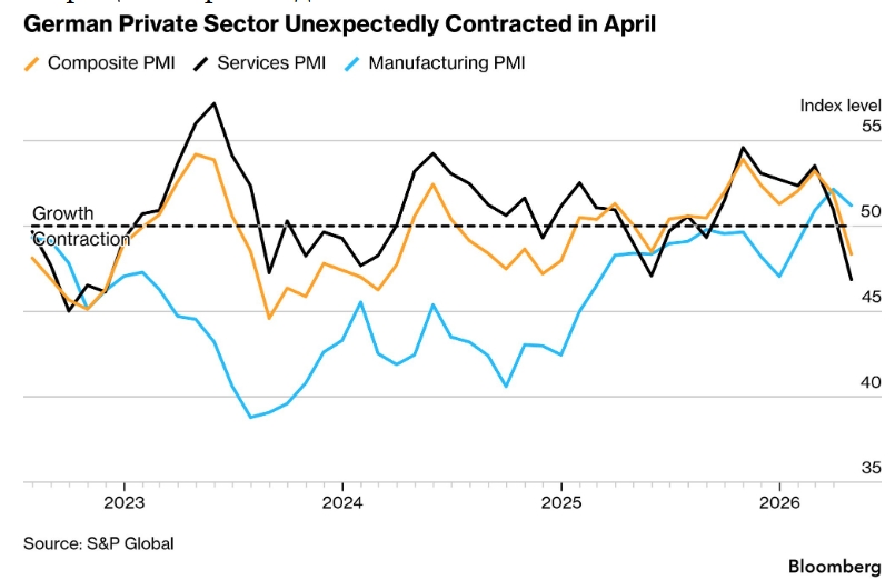 Неожиданное снижение активности в частном секторе Германии совпало с резким падением в сфере услуг из-за войны с Ираном.