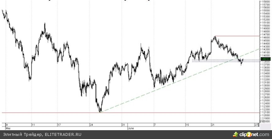 Фьючерс на индекс РТС в пятницу на вечерней сессии пробил скопление краткосрочных поддержек в районе 138 000, чем продемонстрировал слабость покупателей на срочной площадке, однако пробой будет истинным лишь при подтверждении движения в сторону выхода за границу боковика в часы работы биржи акций в понедельник. Основной целью медведей после прохода зоны поддержек является нижняя граница среднесрочного боковика на отметке 120 800. Однако перед этим им предстоит преодолеть центральную зону широкого бокового канала.