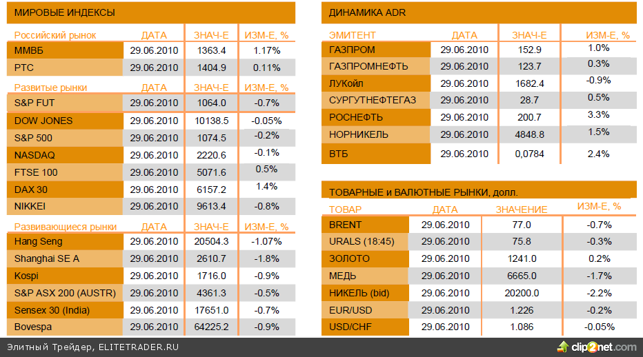 Сегодня мы ожидаем открытие торгов ниже предыдущих уровней закрытия на российском фондовом рынке. Conference Board пересмотрела апрельскую оценку опережающих индикаторов китайской экономики с понижением - с 1,7% до 0,3%; Китайский Shanghai Composite упал на 1,8% - до самого низкого уровня за 14 месяцев; безработица в Японии в мае выросла до 5,2%, промпроизводство снизилось на 0,1%; азиатские рынки акций упали до минимума двух недель; фьючерсы на индексы США в минусе; доллар к евро поднялся до $1,2264