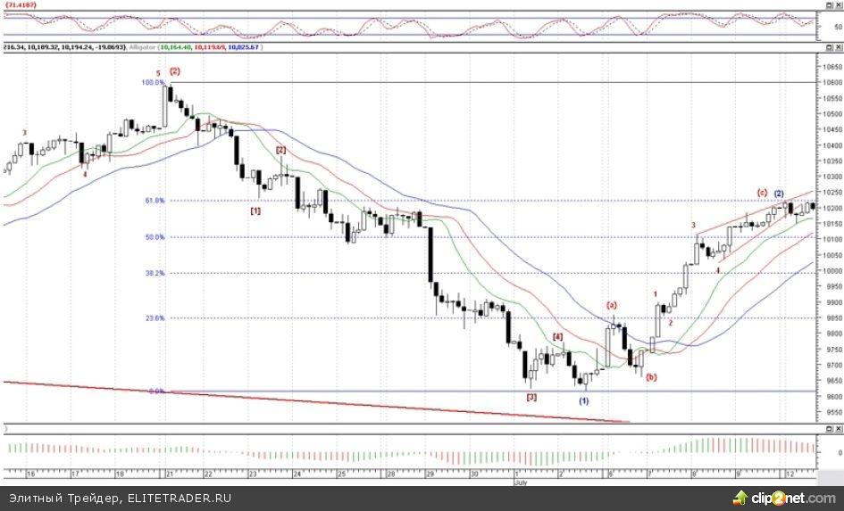 С краткосрочной волновой точки зрения индекс Dow Jones формирует отскок по отношению к снижению от 21 июня, но не выше 10220 пунктов