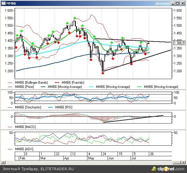 Что будет, если индекс ММВБ не сможет пробить вышеозвученный уровень, понятно и без слов, "медведи" уведут индекс в район скользящих средних в район 1320-1355 пунктов, после чего может быть предпринята еще одна попытка к росту.