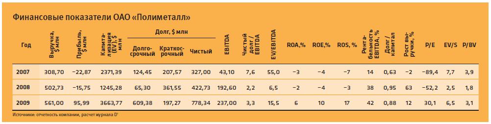 В 2009 году дела "Полиметалла" пошли в гору, выручка выросла до $560,7 млн, а прибыль достигла $96 млн. Увы, все это при огромном долге (см. таблицу).