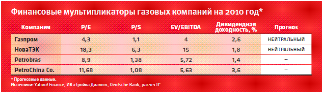Более оптимистично дела обстоят у двуликого Януса: конкурента и "дочки" "Газпрома" – "НоваТЭКа". У компании отличные финансовые результаты, рентабельность, и хороший контроль за издержками. Добыча газа увеличивается, а в ближайшие годы может вырасти еще больше вследствие реализации проектов на Ямале. Кроме того, компания договорилась с "Газпромом" об экспорте газа через ГТС монополии, что может дать более $1 млрд выручки с 2011 года. Единственный минус – уже очень дорого. С учетом этого фактора прогнозируемая динамика акций – в лучшем случае нейтральная.