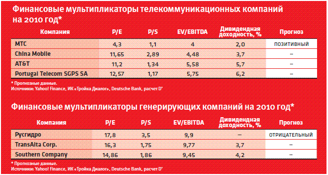 Ну и последняя, десятая компания – "РусГидро" – является лидером среди энергетиков по весу в индексе. Однако при сравнении ее мультипликаторов с западными аналогами получается, что "РусГидро" на текущий момент уже достаточно дорогая (см. таблица), при этом, в отличие, опять же, от западных аналогов, она не платит дивидендов. Поэтому "РусГидро" вряд ли возглавит рост, да и заметно повлиять на индекс она не сможет.