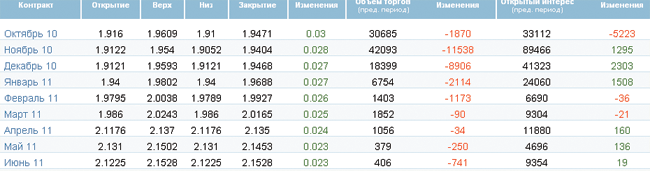 Результаты по контракту WTI (Light sweet) оказались следующими: